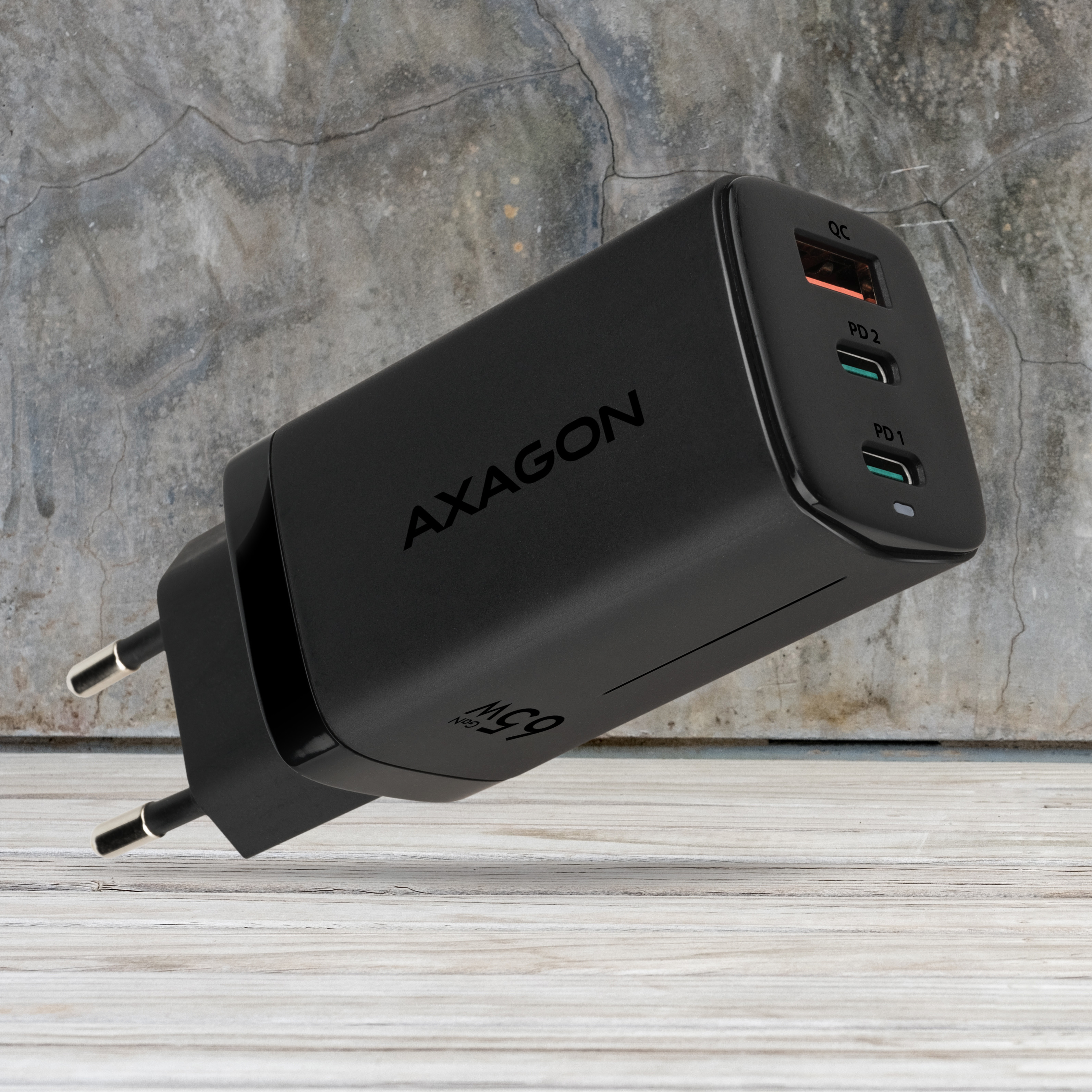 Kompaktní cestovní nabíječka do sítě AXAGON ACU-DPQ65 GaN pro rychlé nabíjení až tří mobilních zařízení současně. Díky celkovému výkonu 65W nabíječka dobíjí notebooky, telefony a další mobilní zařízení nejvyšší možnou rychlostí. Adaptér nabízí nejen standardní USB-A konektor, ale také dva oboustranné USB-C konektory.