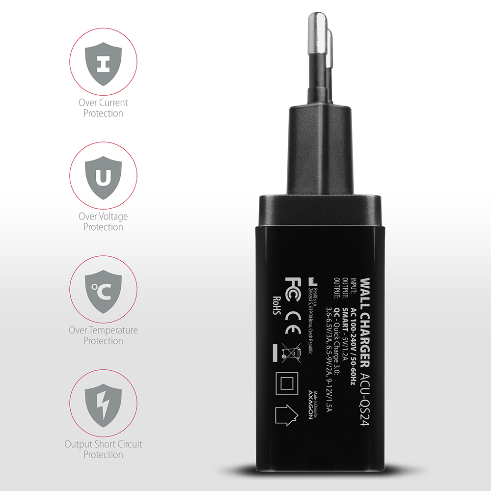 • Smart 5V/3.5A nabíjení, Qualcomm Quick Charge 1.0, USB Battery Charging 1.2 (DCP 1.5A) a Apple 2.4A (iPad)