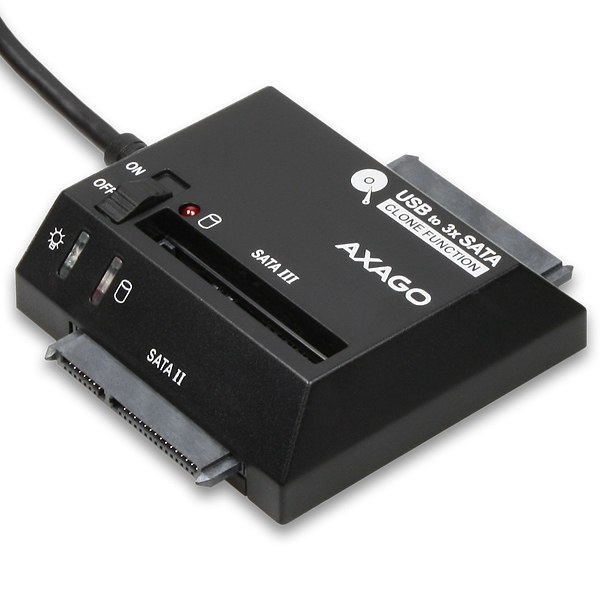 AXAGO CLONE adaptér ADSA-3S je unikátní zařízení umožňující současné připojení až tří SATA disků k počítači přes jediný USB port.