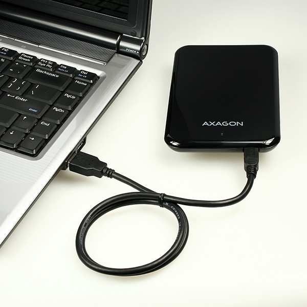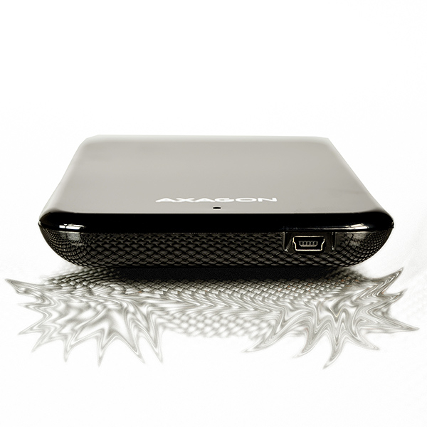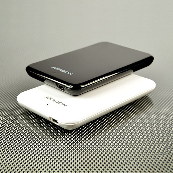 Ultralehký plastový externí box AXAGON EE25-PB PUREbox BLACK s USB 2.0 rozhraním určený pro 2.5" SATA disky.