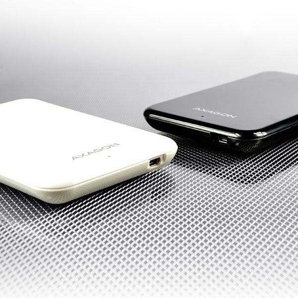 Ultralehký plastový externí box AXAGON EE25-PW PUREbox WHITE s USB 2.0 rozhraním určený pro 2.5" SATA disky.