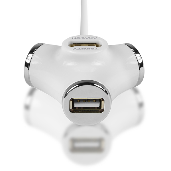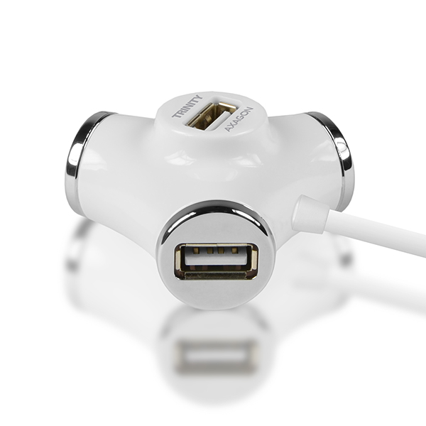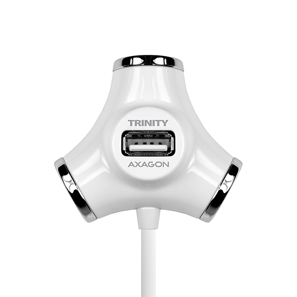 Čtyřportový USB 2.0 TRINITY hub AXAGON HUE-X3 se vyznačuje velmi praktickým designem.