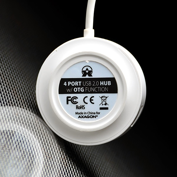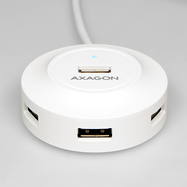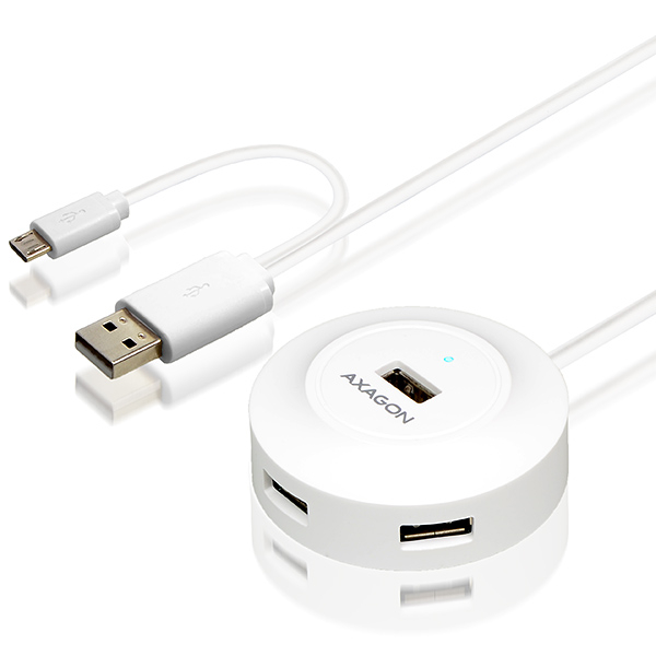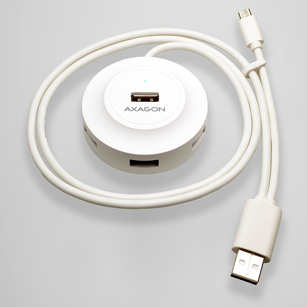 Univerzální čtyřportový USB 2.0 hub AXAGON HUE-X6G s funkcí OTG pro přímé připojení jak k tabletu nebo chytrému telefonu tak k notebooku nebo stolnímu PC.