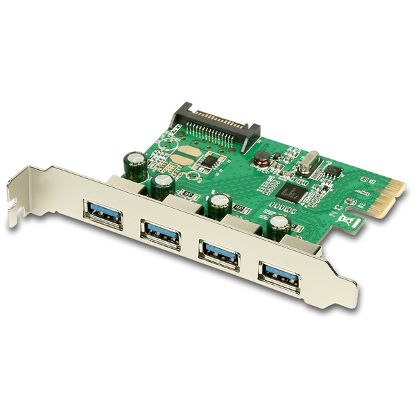 PCI-Express karta AXAGO PCEU-430R SUPERSPEED rozšíří stolní počítač o čtyři vysokorychlostní externí USB 3.0 porty.