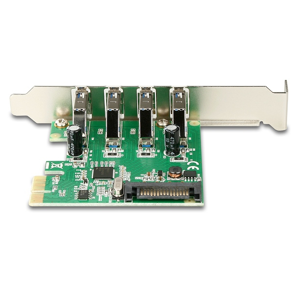 PCI-Express karta AXAGO PCEU-43R SUPERSPEED rozšíří stolní počítač o čtyři vysokorychlostní externí USB 3.0 porty.