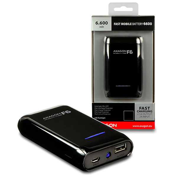 Rychlo nabíjení připojených zařízení (výstup až 2.1A) i externí baterie (vstup až 2A).
