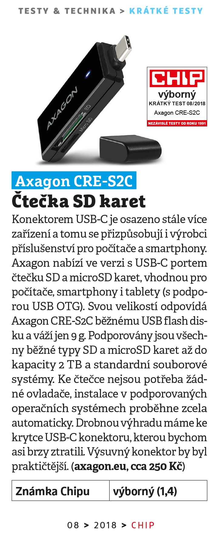 Ausführliche Informationen über den AXAGON CRE-S2C Kartenleser sind