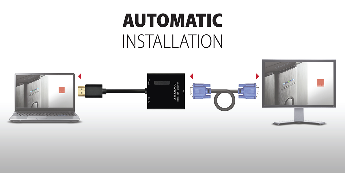 Die Adapter RVH-VG2 und RVH-VGA lösen schnell und einfach das Problem mit Anschluss eines älteren VGA-Bildschirms/Projektors an einen Computer mit dem HDMI-Ausgang.