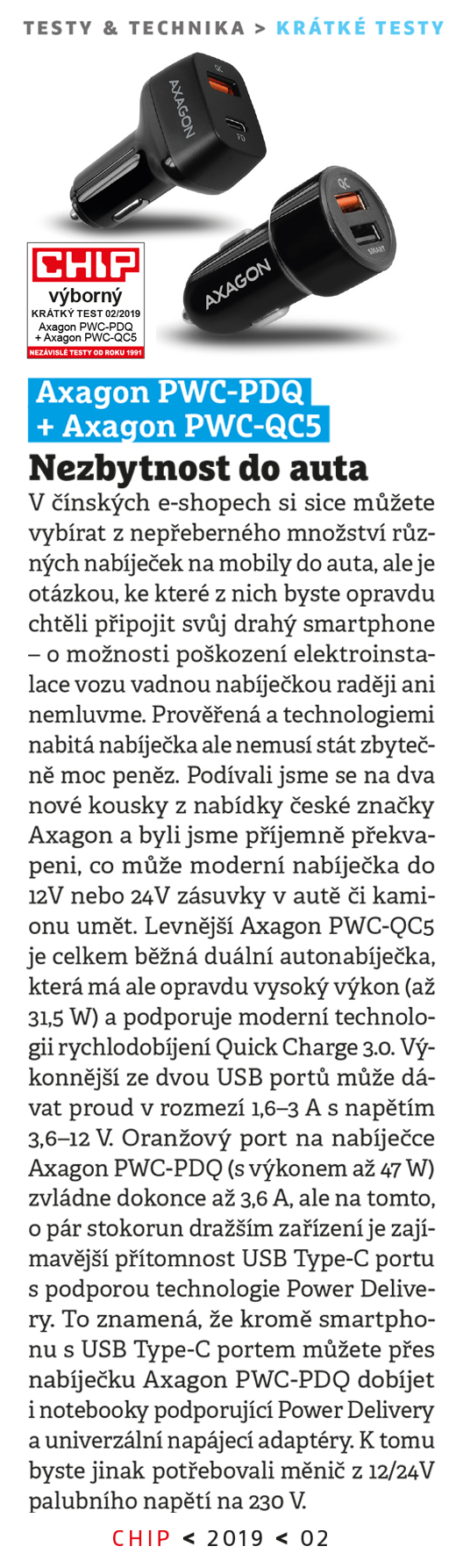 Ausführliche Informationen über die Autoladegeräte AXAGON PWC-QC5 sind hier und über AXAGON PWC-PDQ hier zu finden.