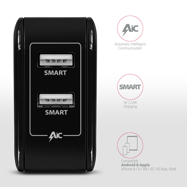 The AIC function recognizes the connected device and automatically selects the optimal charging speed.