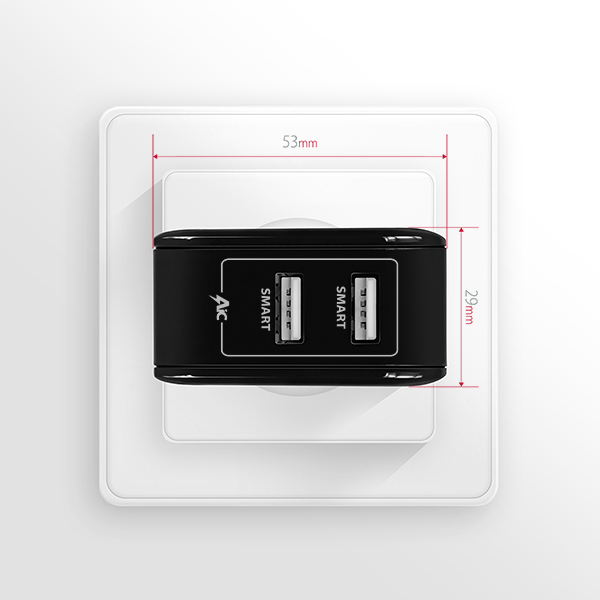 • 2x SMART USB Type A port: smart 5 V / 2.6 A charging and standard 5 V charging