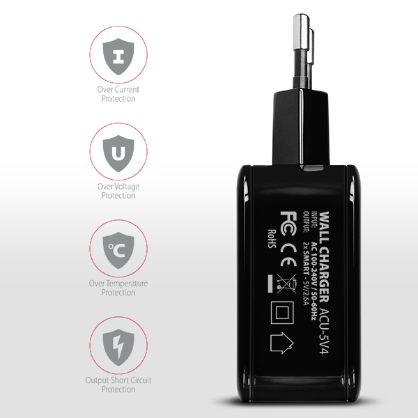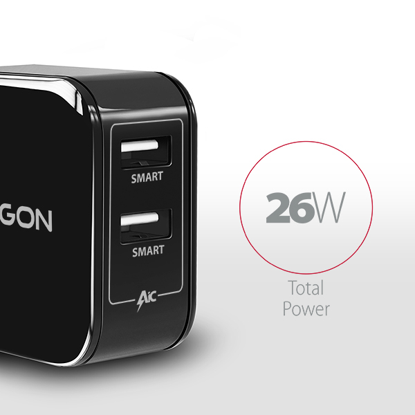 ANDROID & APPLE • 26W POWER • 2x SMART 5V/2.6A OUTPUT • LED