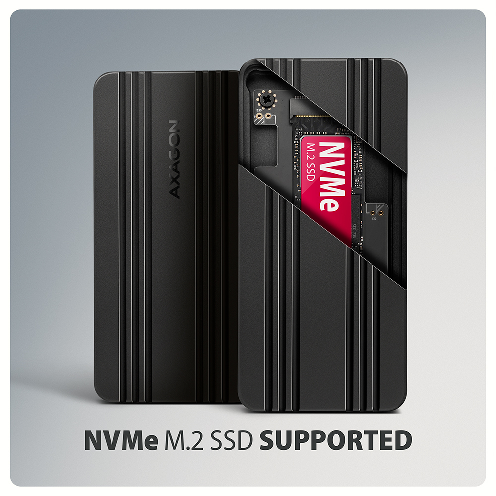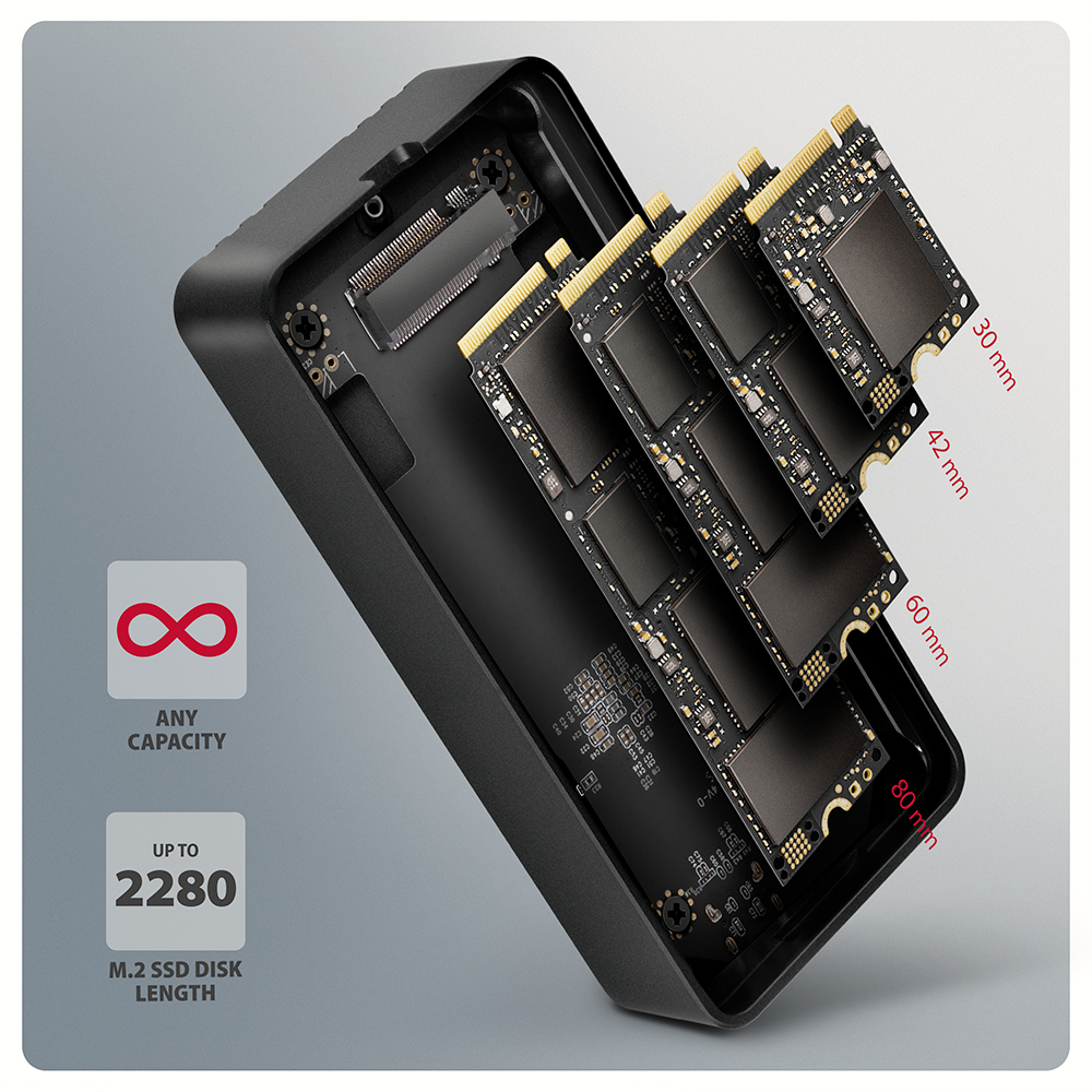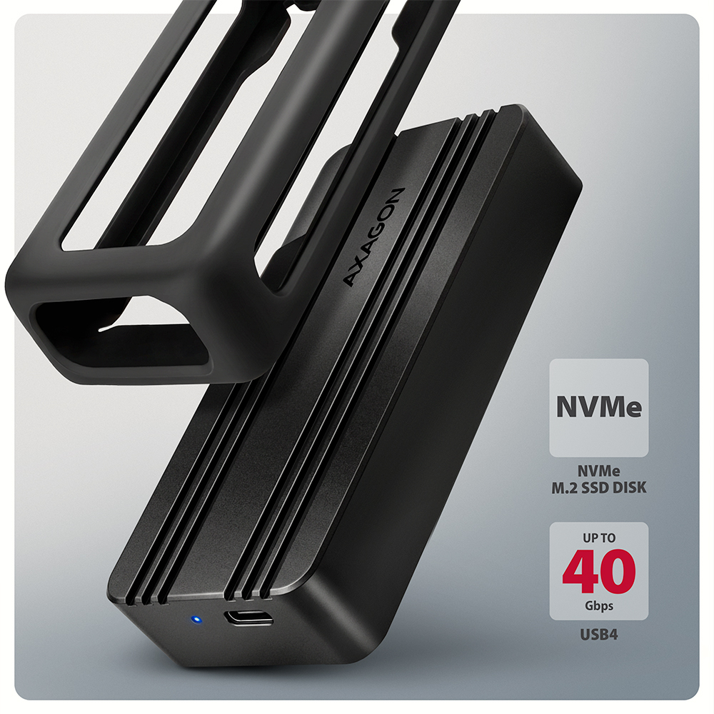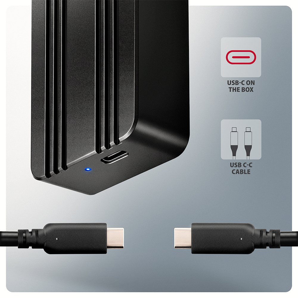 External USB-C 3.2 Gen 2 metal box for M.2 NVMe SSDs.