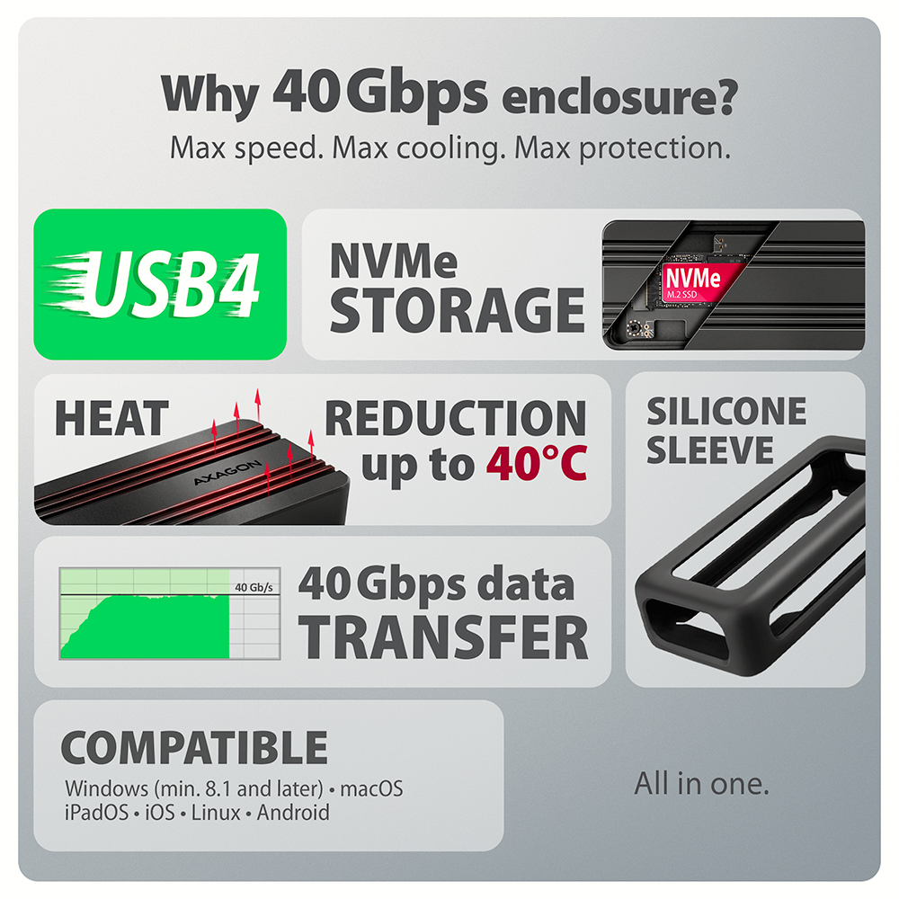 EEM2-40G USB-C 40Gbps external enclosure for M.2 NVMe SSD