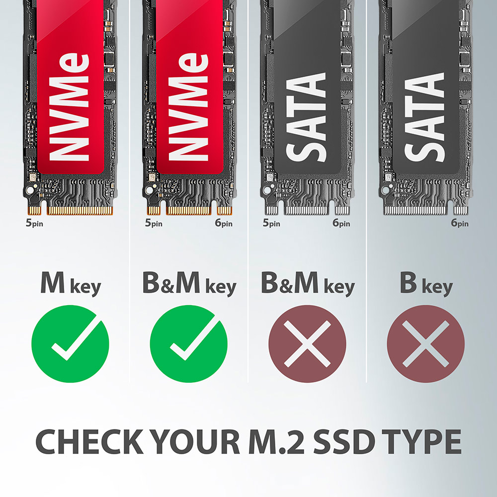 Előnye a három különböző hosszúságú SSD-kártya - 42, 60 és 80 mm - rögzítése. Az M.2 kártyák lehetnek egyoldalúak vagy kétoldalúak. A boxba helyezhető SSD lemezek száma nem korlátozott.
