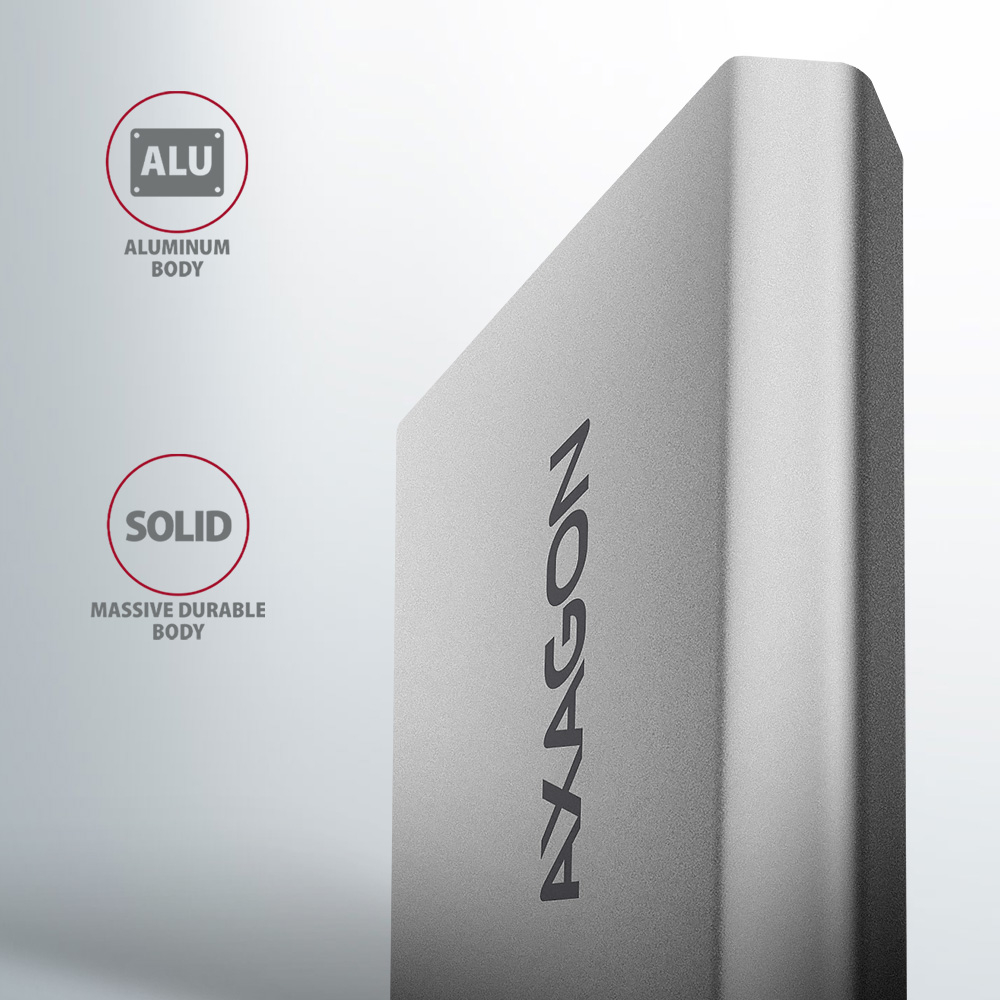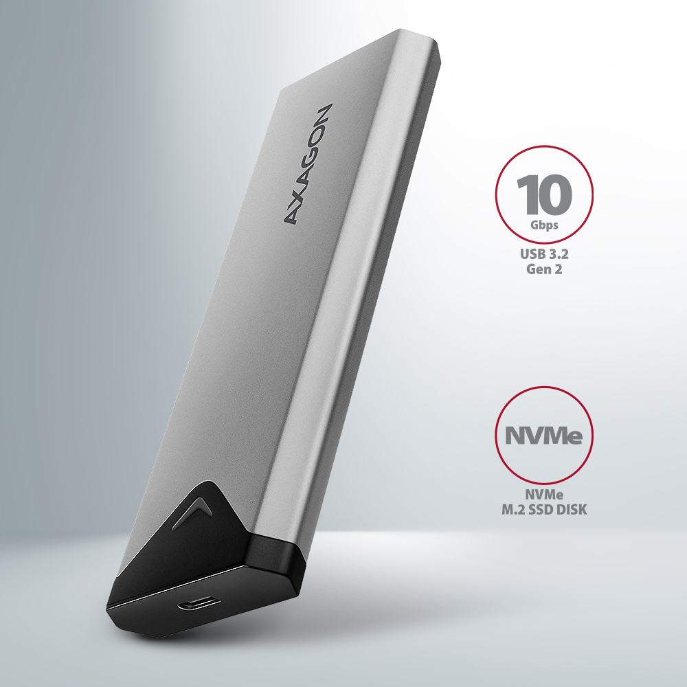 Gyors külső AXAGON EEM2-UG2 ARROW doboz USB 10Gbps interfésszel M.2 NVMe SSD-khez. A megbízható csatlakoztathatóságot a dobozon található megfordítható USB-C csatlakozó teszi lehetővé. A csomagban találsz egy USB-C -> USB-C kábelt, amellyel a dobozt a számítógéphez csatlakoztathatod.