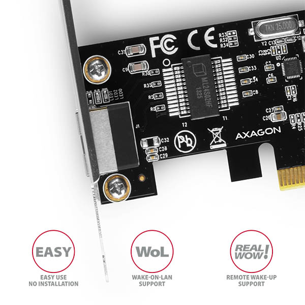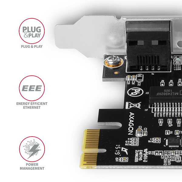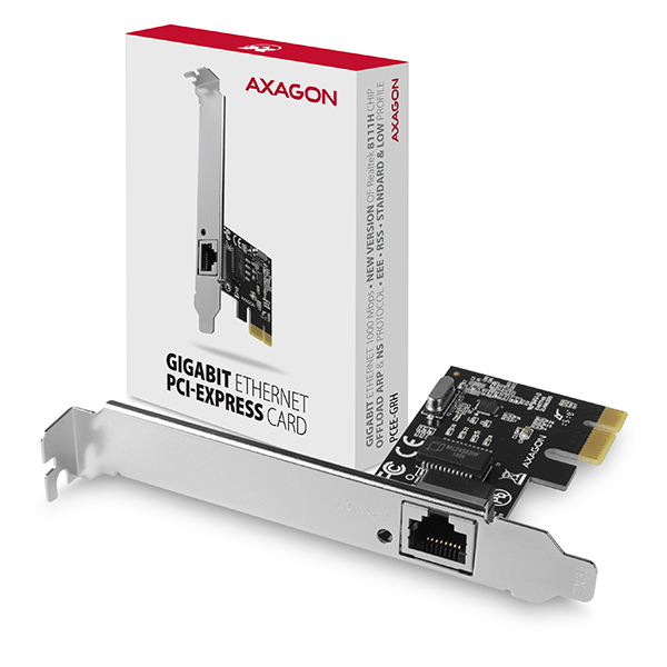 Az AXAGON PCEE-GRH PCI-Express hálózati kártya felruházza az asztali számítógépet egy ultragyors, Gigabites Ethernet kapcsolattal. Visszafelé kompatibilis a 10/100Base-T hálózatokkal.