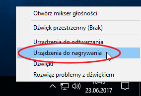 Kliknij prawym przyciskiem na ikonę głośnika w obszarze systemowym i wybierz "Urządzenia do nagrywania".